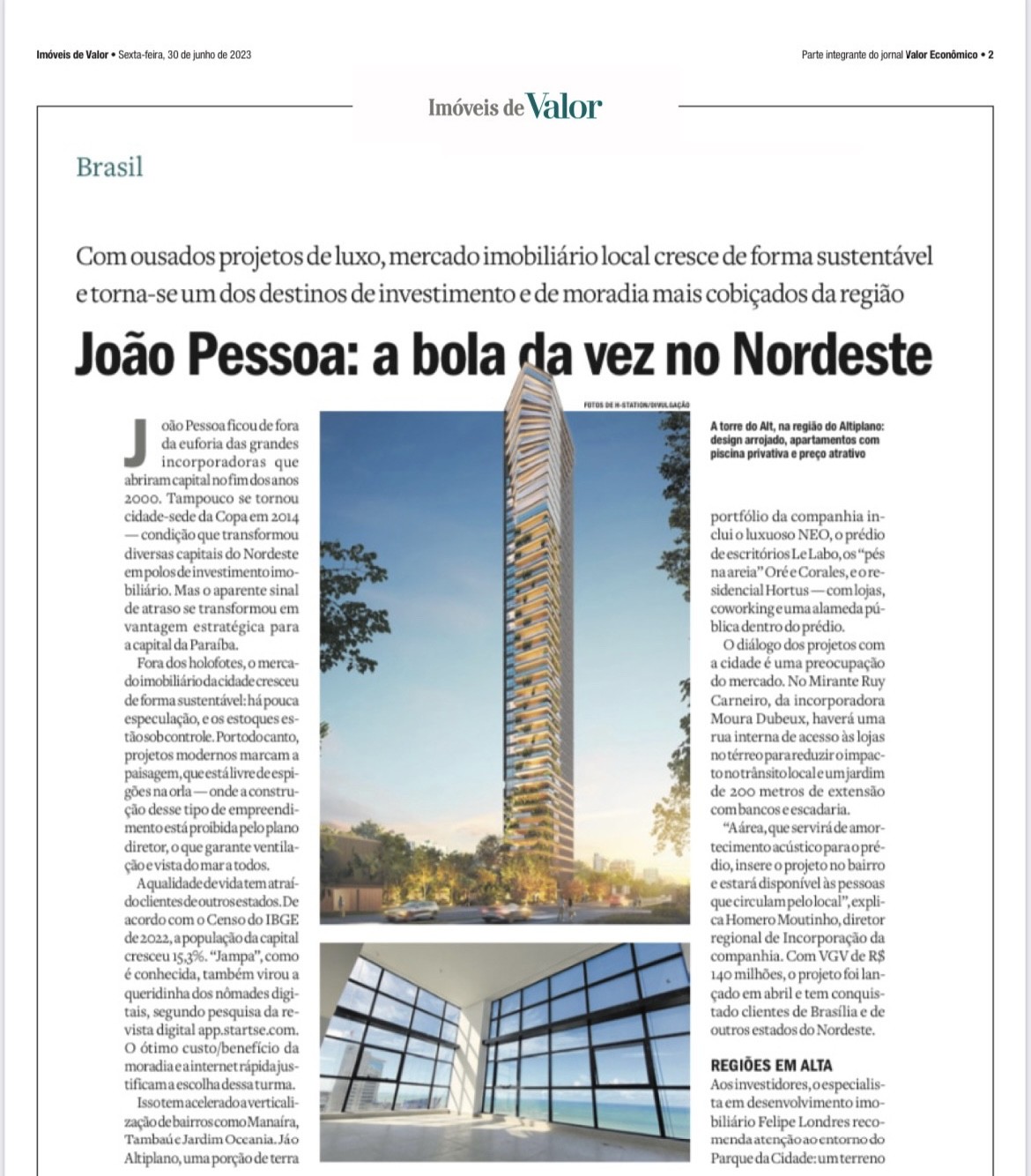 João Pessoa e H-Station recebem destaque nacional em jornal Valor Econômico